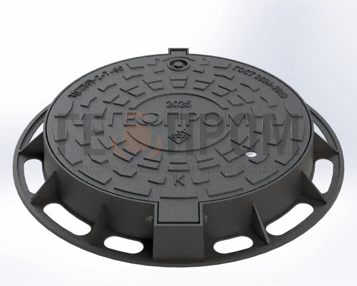 колодцев подземных инженерных сетей в местах с высокой транспортной нагрузкой. Маркировка «Т» (тяжелый), класс нагрузки «C250» (до 25 тонн), диаметр проема 600 мм делают его оптимальным выбором для установки: